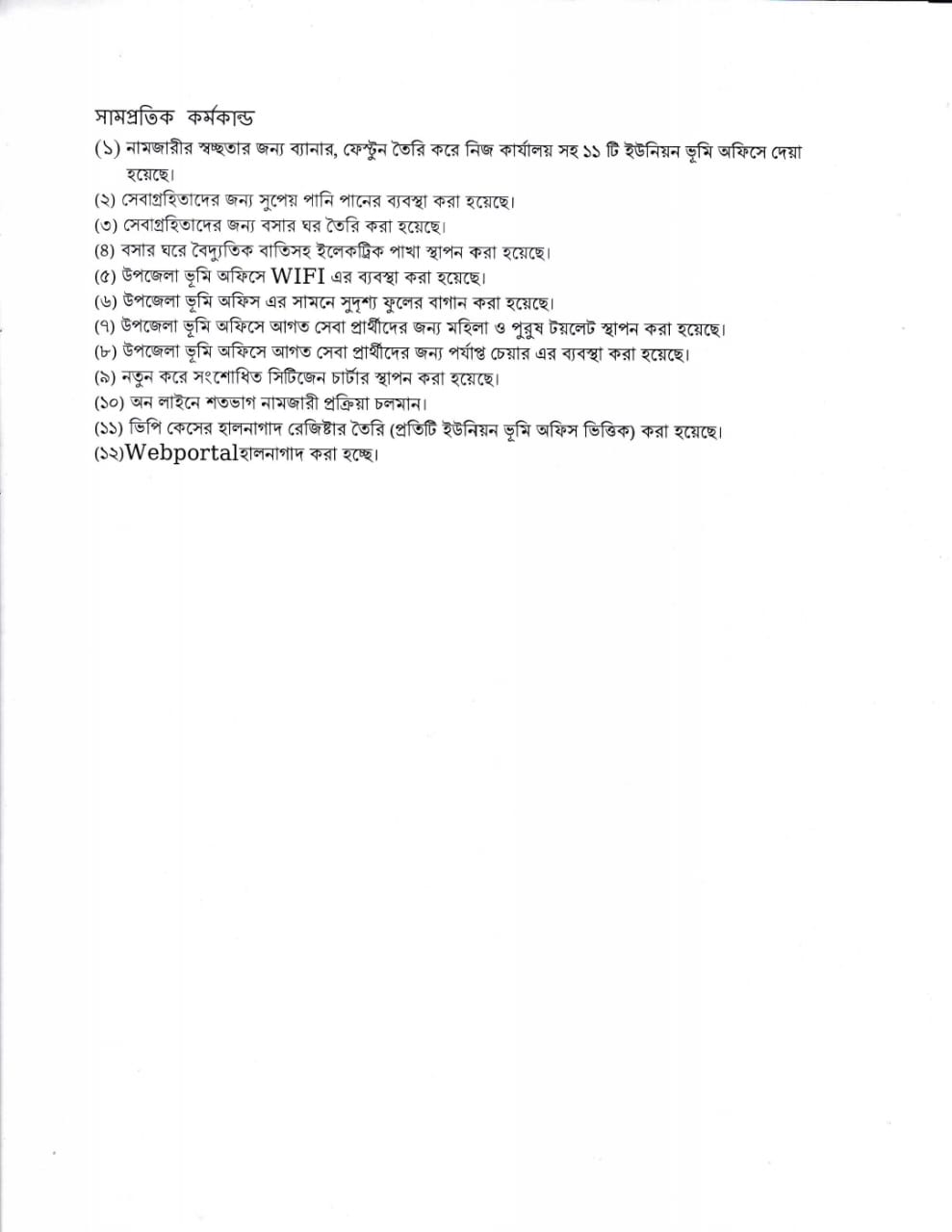 (৯) নতুন করে সংশোধিত সিটিজেন চার্টার স্থাপন করা হয়েছে।